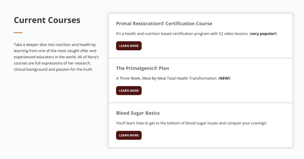You can find my courses here: https://primalcourses.theancestralnutritionfoundation.org/
